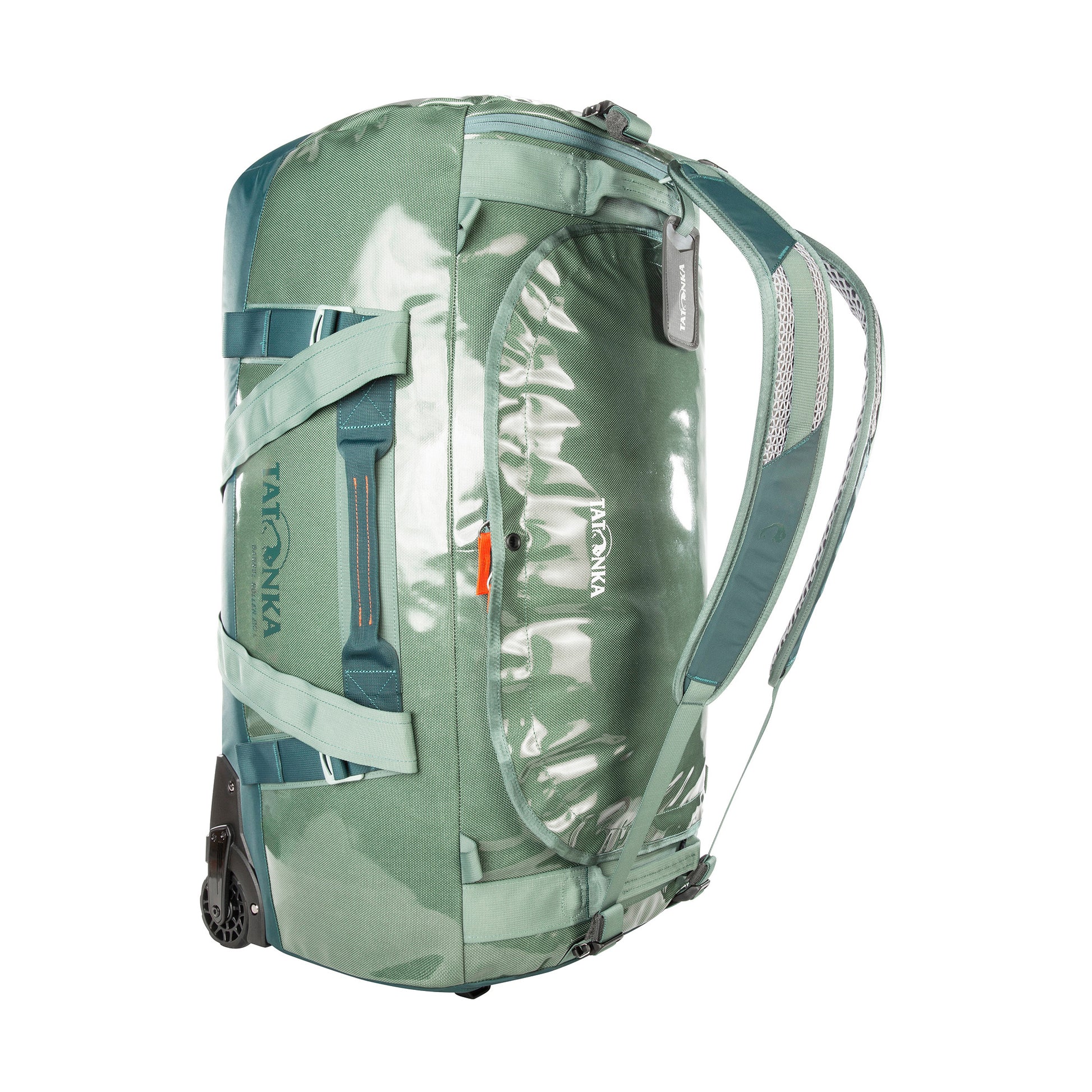 The Barrel Roller 80 features Tatonka’s unique Titan Chassis, one of the strongest and most stable wheel and handle systems on the market. It is made of TPU-coated nylon material, the padded bottom is constructed using abrasion-resistant material with a PFAS-free DWR finish. The large opening of the travel bag makes packing simple. There is a zippered mesh pocket under the lid and flat insert pockets in the main compartment for smaller items. A spacious side pocket is accessible from the outside.