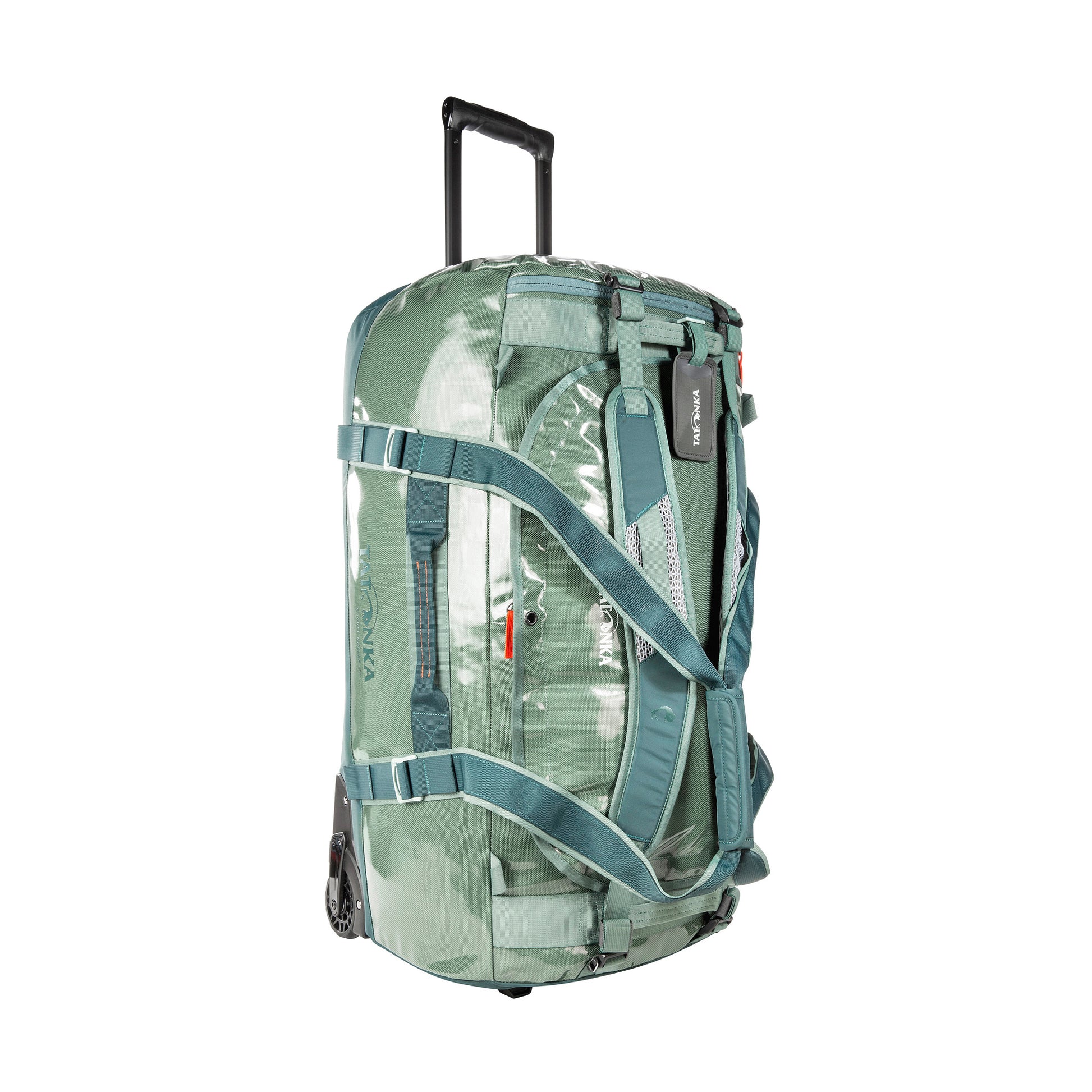 Trolley bag with 80-litre volume, two silent wheels, telescopic handle and a large opening. Made of TPU-coated nylon material.